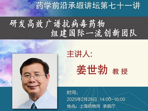 復旦大學姜世勃教授應邀作藥學前沿承嘏講壇第七十一講